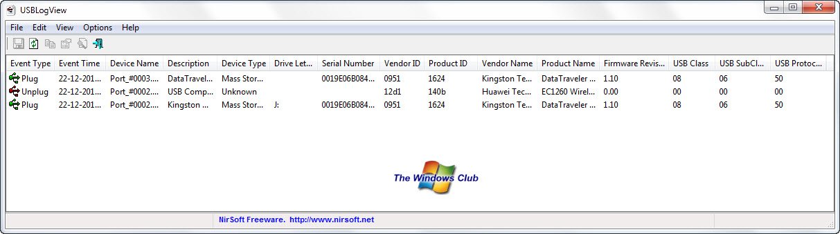 Nirsoft is well-known for releasing small yet useful freeware for Windows and nosotros have already covered many here on TWC. USBLogView is another such free tool that volition permit yous find out when anyone plugged or unplugged any USB device to a computer.